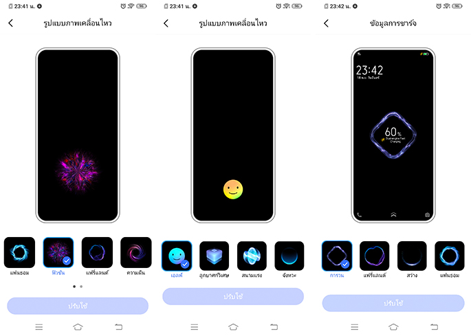 Vivo S1 Pro มาพร้อมกับระบบรักษาความปลอดภัยที่ใส่มาให้ครบเลยเช่นกัน ทั้งการปลดล็อกด้วยรหัสผ่านรูปแบบต่าง ๆ การปลดล็อกด้วยใบหน้า และการปลดล็อกด้วยลายนิ้วมือแบบ In-display Fingerprint Scanning ที่มาพร้อมกับการปรับแต่งไอคอนใหม่และแอนิเมชันปลดล็อกหลายแบบให้เลือกเล่นกันแบบสนุก ๆ โดยสามารถเข้าไปเปลี่ยนในเมนู 'เอฟเฟ็กต์แบบไดนามิก' ได้เลย