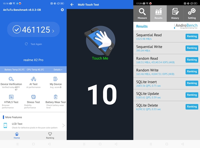 - ทดสอบด้วยแอปพลิเคชัน AnTuTu Benchmark ทำไปได้ 461,125 คะแนน