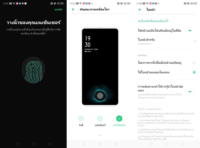 realme X2 Pro มาพร้อมสแกนลายนิ้วมือใต้หน้าจอความเร็วสูง ใช้เวลาในการปลดล็อคเพียงแค่ 0.23 วินาทีเท่านั้น สามารถบันทึกได้ 5 ลายนิ้วมือ และมาพร้อมเอฟเฟค 6 แบบ และรองรับสแกนใบหน้า