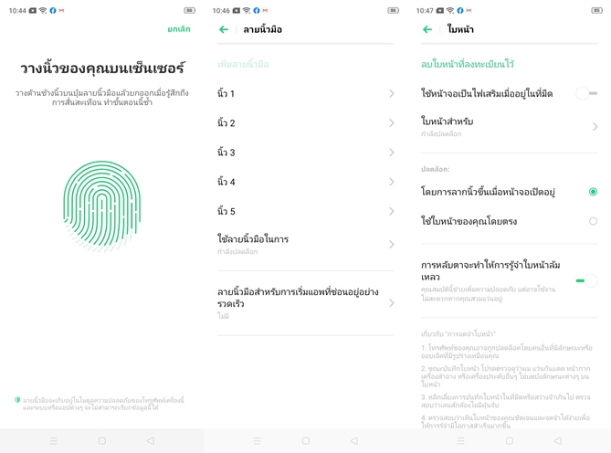 ด้านหลังจะมีเซ็นเซอร์สแกนลายนิ้วมือ รองรับสูงสุด 5 ลายนิ้วมือ ความเร็วและความแม่นยำทำได้ดีมาก นอกจากนี้ยังรองรับการสแกนใบหน้าด้วยนะครับ