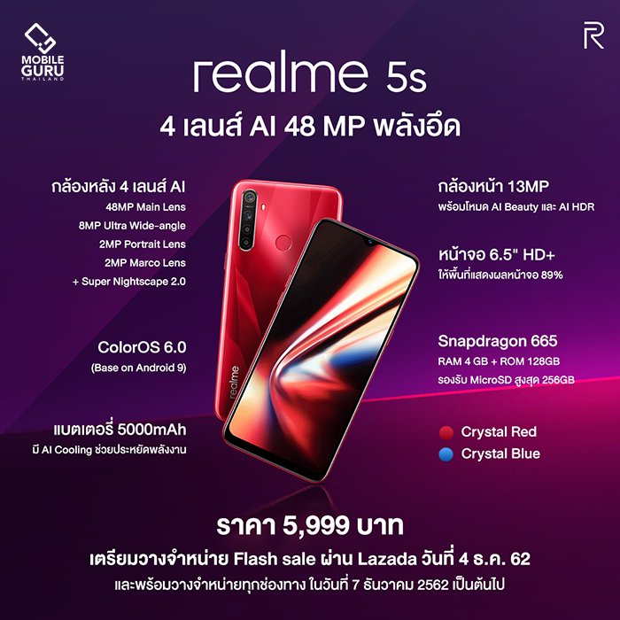 realme 5s มีรายละเอียดสเปค ดังต่อไปนี้