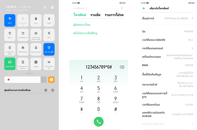 ในส่วนของซอฟต์แวร์จะรันบน Color OS 6.1 ใช้พื้นฐานของ Android OS 9.0 Pie ในการพัฒนา ดังนั้นฟีเจอร์และความสามารถต่างๆ ของ Android Pie ก็ถูกยกมาทั้งหมดครับ ไม่ต้องกังวลไป นอกจากนี้ทาง OPPO ยังได้บิ้วอินธีม "Gundam" มาให้ตั้งแต่เปิดเครื่องเลยด้วย ซึ่งตัวธีมจะมาในโทนสีขาวเพื่อเข้ากับตัวบอดี้ของมือถือ ซึ่งทางออปโป้ก็ยังคงใช้คอนเซ็ปท์ในการออกแบบเดียวกันทั้งหมด ที่เน้นออกแบบภายนอก (Hardware) และภายใน (Software) ให้เข้ากันได้เป็นหนึ่งเดียว ซึงเป็นเอกลักษณ์ของออปโป้ที่ใช้บนสมาร์ทโฟนหลายรุ่น