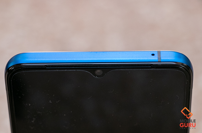 ด้านหน้าตัวเครื่อง มาพร้อมหน้าจอแสดงผล Waterdrop Display ขนาด 6.5 นิ้ว ความละเอียดระดับ FullHD+ มีพื้นที่หน้าจอให้ใช้งานมากถึง 91.7% รองรับการแสดงผลด้านสี DCI-P3, HDR10+, ค่าความสว่างสูงสุด 700 nits และสามารถแสดงผลด้วย Refresh rate สูงสุดที่ 90Hz