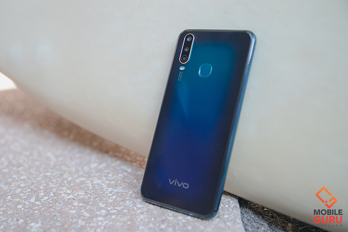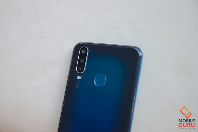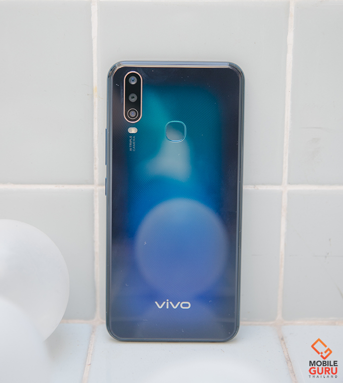 ถัดจากกล้องลงมาเป็นไฟแฟลช LED และมีเซ็นเซอร์สแกนลายนิ้วมืออยู่บริเวณกึ่งกลางค่อนมาทางด้านบนของตัวเครื่อง พร้อมด้วยโลโก้ Vivo สีเงิน ที่อยู่บริเวณด้านล่างของฝาหลัง