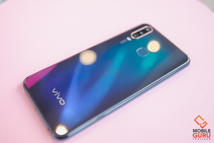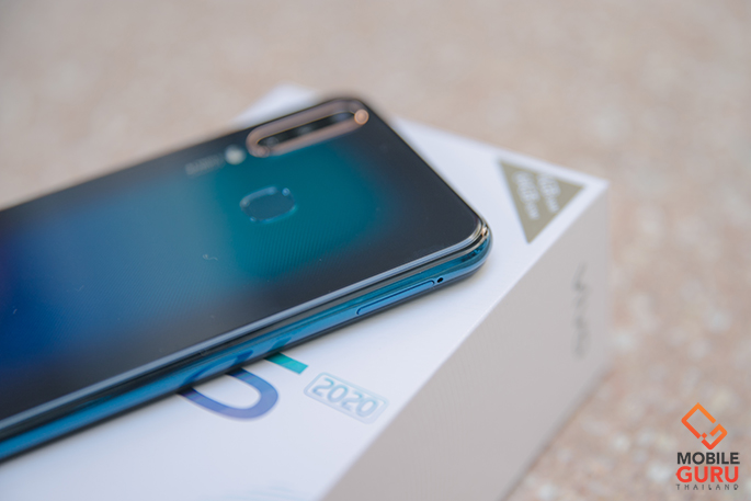 Vivo Y15 2020 มาพร้อมกับดีไซน์ตัวเครื่องเป็นมันเงา ไล่เฉดสีสวยงามแบบ Magical Color Fusion โดยได้รับแรงบันดาลใจมาจากธรรมชาติของแสงที่กระทบบนพื้นผิวทะเลสาบ จนเกิดเป็นแสงและเงาสะท้อน มีให้เลือก 2 สี คือ สีแดง-ดำ Burgundy Red และสีดำ-น้ำเงิน Phantom Black ซึ่งเป็นสีที่เราได้รับเครื่องมารีวิวให้ชมกันในวันนี้ ซึ่งเมื่อได้เห็นดีไซน์และสีสันของตัวเครื่องเป็นครั้งแรก ต้องบอกเลยว่าสวยโดนใจเลยค่ะ เพราะด้วยโทนสีที่ดูไม่ฉูดฉาด ด้วยโทนสีดำอมน้ำเงิน บวกกับลวดลายที่ดูคล้ายกับลายริ้วบนผิวน้ำที่กำลังถูกสายลมอ่อนๆ พัดอยู่ ทำให้ตัวเครื่องดูมีเสน่ห์ น่าประทับใจเอามากๆ เลย