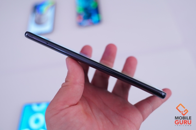 สำหรับดีไซน์รอบเครื่อง ด้านบนจะมีไมค์ตัดเสียงรบกวน ด้านล่างจะใช้พอร์ท USB Type-C, ไมโครโฟน, ลำโพง และยังคงมีพอร์ทหูฟัง 3.5 มม. มาให้ด้วยนะครับ ไม่ได้ตัดออก ถูกใจคนที่ชอบฟังเพลงอย่างแน่นอน ส่วนด้านซ้ายมีช่องใส่ซิม ด้านขวามีปุ่มปรับระดับเสียง และปุ่ม Power