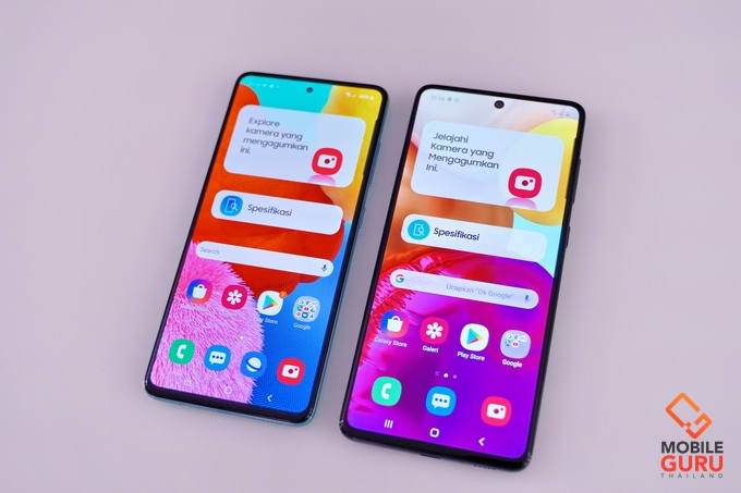 Samsung Galaxy A51 และ Galaxy A71 เป็นสมาร์ทโฟนตระกูล Galaxy A รุ่นใหม่ล่าสุดที่น่าประทับใจเกินคาดครับ ทั้งในส่วนของดีไซน์ที่สวยงาม ลวดลายแบบปริซึมที่สานต่อมาจาก Samsung Galaxy A50s และรูปแบบกล้องแนวใหม่ทรงสี่เหลี่ยม รวมไปถึงเป็นครั้งแรกของ Galaxy A ที่มาพร้อมหน้าจอแบบ Infinity-O Display เหมือนรุ่นเรือธง และเป็นครั้งแรกของ Samsung ที่มีกล้อง Macro สำหรับถ่ายภาพระยะใกล้มากๆ มาให้ด้วยครับ