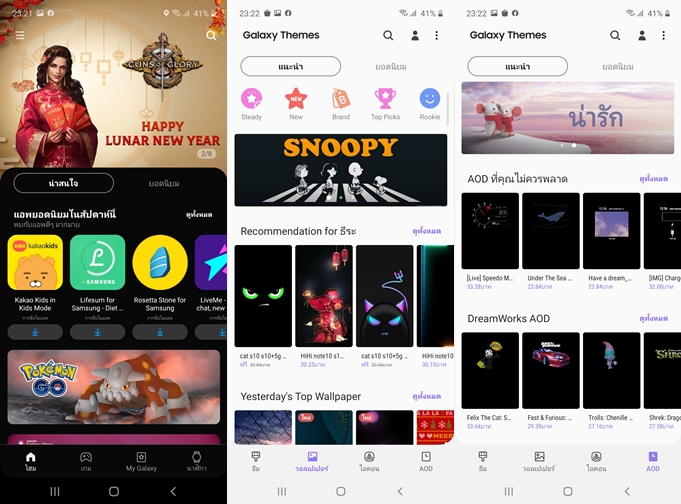 มาพร้อมแอป Galaxy Store แหล่งรวมแอปพลิเคชันต่างๆ สำหรับผู้ใช้งานซัมซุง และ Galaxy Themes แหล่งรวมธีม, วอลเปเปอร์, ไอคอน และ Always-On Display สวยๆ ให้ดาวน์โหลดกัน มีทั้งฟรีและเสียเงิน