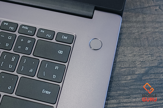 อีกหนึ่งไฮไลท์ของ Matebook D15 กับระบบสแกนนิ้วมือ ที่ทางหัวเว่ยนำมาติดตั้งบนตำแหน่ง ปุ่มกดเปิด-ปิดเครื่อง (Power) เพื่อใช้ในการยืนยันตัวตนในการขอเข้าถึงสิทธิส่วนตัวต่างๆ บนตัวเครื่อง