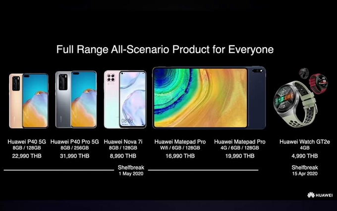 ล่าสุดก็เปิดตัวในประเทศไทยเรียบร้อยแล้วนะครับ Huawei P40 5G และ Huawei P40 Pro 5G รวมไปถึงกองทัพสินค้ารุ่นใหม่ๆ ไม่ว่าจะเป็น Huawei Nova 7i, Huawei MatePad Pro และ Huawei Watch GT 2e ราคาเปิดตัวมีดังนี้ครับ