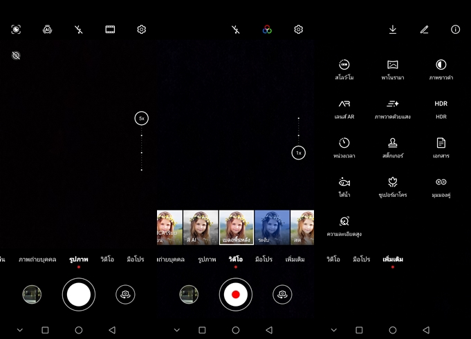 - 8MP F2.4, 80 มม. (Telephoto), PDAF, OIS, 3x optical zoom, 5x hybrid zoom, 30x digital zoom