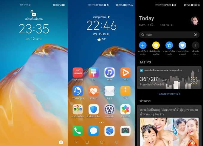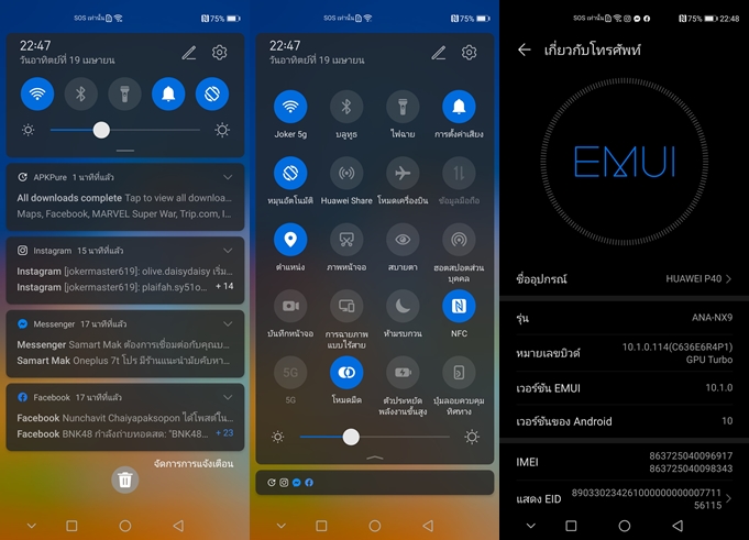 - ทำงานบน Android 10 (AOSP + HMS) ครอบทับด้วย EMUI 10