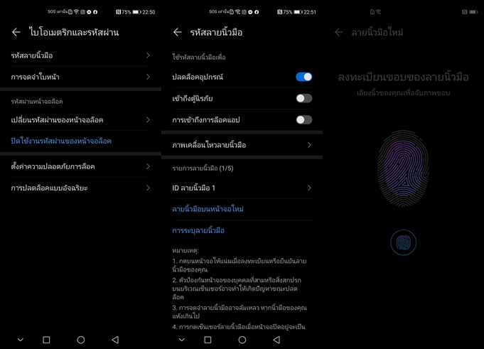 Huawei P40 5G รองรับทั้ง Face ID และ Fingerprint (under display, optical) รองรับสูงสุด 5 ลายนิ้วมือ ความรวดเร็ว และความแม่นยำยอดเยี่ยม สำหรับรุ่นนี้ผมว่าวางตำแหน่งสแกนลายนิ้วมือแปลกๆ หน่อยนะครับ เพราะจะวางตำแหน่งสูงกว่ารุ่นก่อนชัดเจน ซึ่งก็ช่วยให้การวางนิ้วเป็นธรรมชาติมากขึ้น ผมว่าเวลาสแกนมันดูสะดวกมากกว่าเดิม และในส่วนของ Gesture และ Air Gesture มีมาให้ครบครับ แถมผมชอบในส่วนของ Air Gesture มากนะ ความแม่นยำทำได้ดีมาก ไม่รู้สึกฝืนหรือวืดวาด มันใช้งานได้จริงครับ