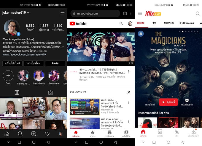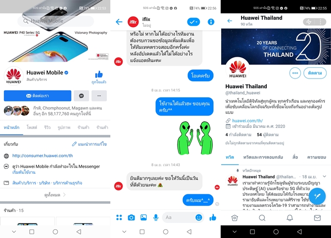 ในตอนนี้แอปพลิเคชั่นอย่าง Facebook, Facebook Messenger, Twitter หรือ Instagram สามารถใช้งานได้สมบูรณ์ครับ พร้อมการแจ้งเตือนก็ปกติ ส่วน Youtube เราลงแอปฯ ไม่ได้ เพราะจะเรียกหา GMS แต่เราสามารถรับชมผ่าน Browser ได้ ใช้งานได้สมบูรณ์ เพียงแต่จะไม่สามารถขยายเต็มจอได้เหมือนในแอปพลิเชั่น ส่วนแอปพลิเคชั่นรับชมภาพยนต์อย่าง iFlix สามารถรับชมได้ตามปกติเลยครับ และรองรับการรับชมภาพความละเอียดสูงด้วย (พอดีผมไม่ได้สมัคร Netflix ก็เลยไม่ได้ทดสอบ) ส่วนเจ้าอื่นๆ อย่าง WeTV, Viu มีให้ดาวน์โหลดนะครับ รวมไปถึงแอปฯ ที่กำลังฮิตทั่วบ้านทั่วเมืองอย่าง TikTok และ JOOX ด้วย และจากข่าวล่าสุด ทางแอปพลิเคชั่น Line จะปล่อยลงใน AppGallery ภายในเดือนเมษายนนี้ อดใจรอกันได้เลย