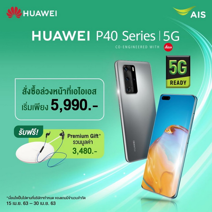 ราคาพิเศษพร้อมแพ็คเกจจากผู้ให้บริการเครือข่ายโทรศัพท์ เริ่มต้นที่ 5,490 บาท สำหรับ Huawei P40 และ 7,990 บาท สำหรับ Huawei P40 Pro
