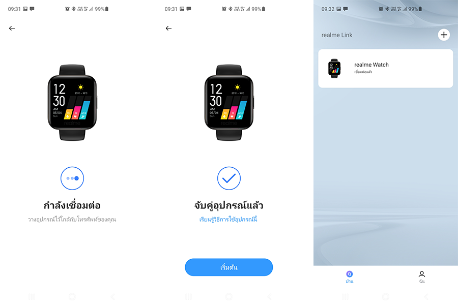 เมื่อเชื่อมต่อสำเร็จก็จะปรากกฏแถบ realme watch ของเราบนหน้าต่างแอปพลิเคชั่น realme Link แบบในรูปเลย