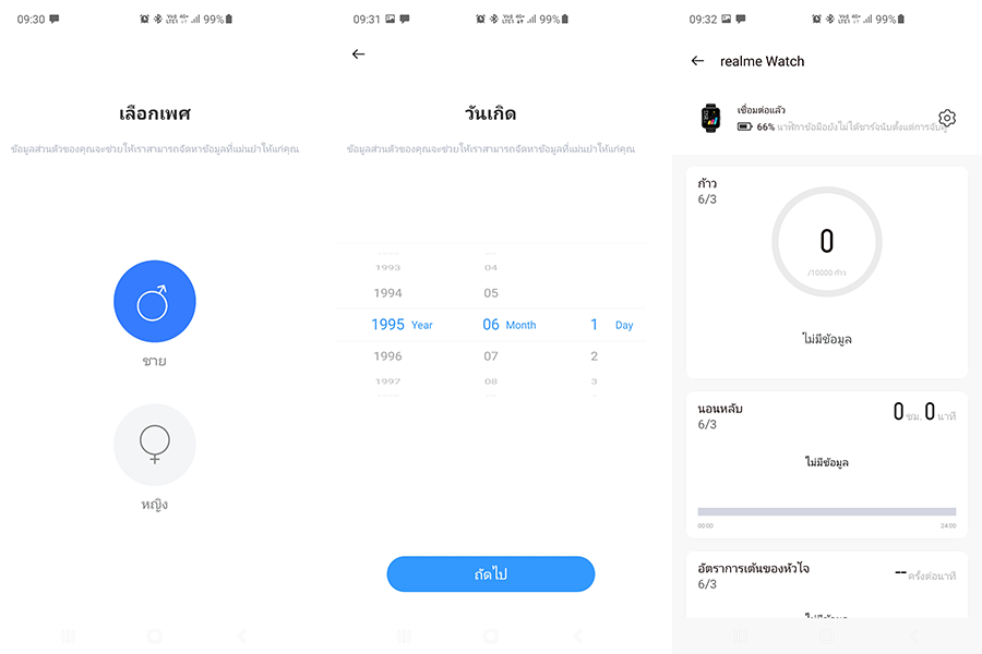 หลังจากดาวน์โหลดแอปพลิเคชั่นได้แล้ว ก็ให้ทำการลงทะเบียนแอคเคาน์ของ realme Link ให้เรียบร้อย ซึ่งการลงทะเบียนก็ใช้วิธี OTP ข้อความรหัสเข้าหมายเลขมือถือที่เราใช้งานอยู่ ซึ่งเมื่อสมัครแอคเคาน์เสร็จแล้วตัว realme watch ก็แจ้งเตือนบังคับให้เราทำการเชื่อมต่อกับสมาร์ทโฟนที่ใช้งานอยู่ผ่าน Bluetooth ขั้นตอนนี้ก็ให้เราไปเปิดบลูทูธที่มือถือและเข้าแอปฯ realme Link เพื่อทำการจับคู่ Pair ให้เรียบร้อยครับ