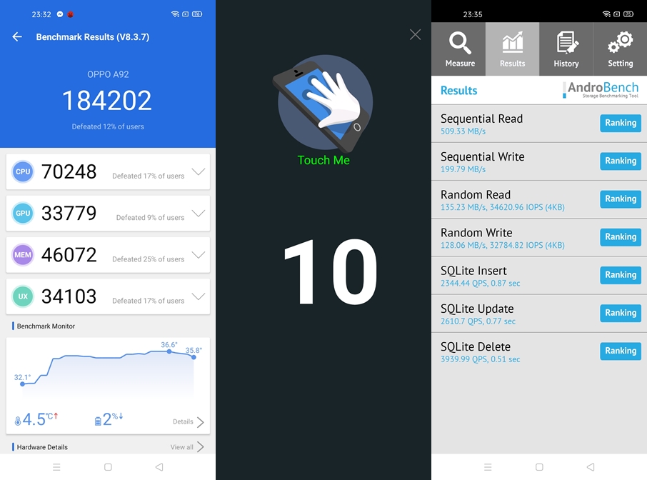 ผลคะแนนทดสอบของ OPPO A92