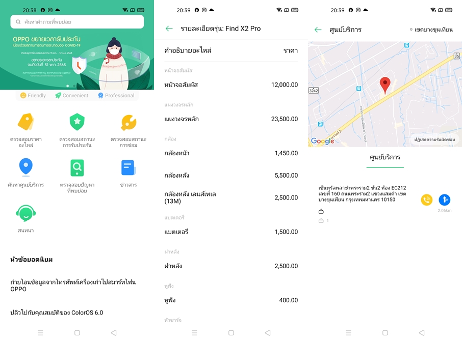 และบริการที่หลายคนเลยไม่เคยใช้งาน OPPO Service เราสามารถลงทะเบียนรับประกัน Online ตรวจสอบสถานะประกัน ตรวจสอบสถานะการส่งซ่อม และสามารถตรวจสอบราคาอะไหล่ล่วงหน้า ค้นหาศูนย์บริการใกล้บ้าน (ซึ่งทาง OPPO มีศูนย์บริการทั่วประเทศเลยครับ เป็นแบรนด์ชั้นนำที่มีศูนย์บริการมากที่สุดอันดับต้นๆ ในประเทศไทย ในส่วนของแบรนด์สมาร์ทโฟน) พร้อมฟีเจอร์ตรวจสอบสภาพเครื่องด้วยตัวเอง