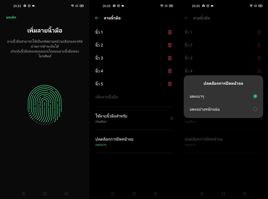 OPPO A92 รองรับแสกนใบหน้า AI Face Access และสแกนลายนิ้วมือ ที่ปุ่ม Power ด้านข้างตัวเครื่อง รองรับสูงสุด 5 ลายนิ้วมือ ความแม่นยำทำได้ดีมากครับ