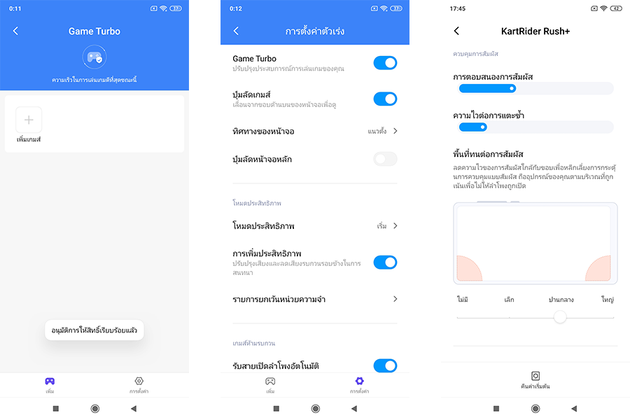 โหมด Game Turbo : สำหรับปรับแต่งค่า Setting ให้เหมาะกับการเล่นเกมแต่ละเกม ซึ่งช่วยได้อยู่นะทำให้ตัวเครื่องตอบสนองต่อความต้องการในการเล่นเกมแต่ละเกมของเราได้ขึ้นจากค่าพื้นฐานที่ตั้งมาจากโรงงาน แนะนำให้ลองเข้ามาปรับหลังจากเข้าไปเล่นกันดู