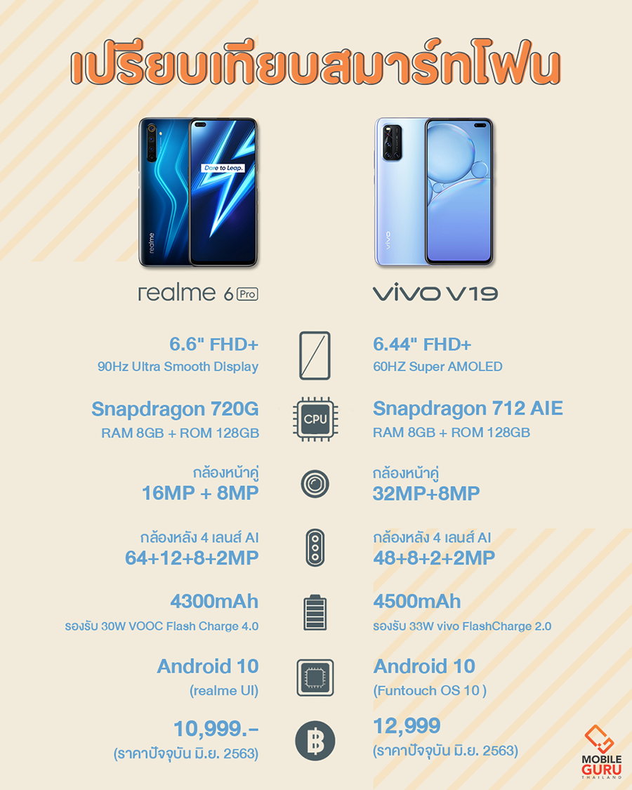 รีวิว เปรียบเทียบ realme 6 Pro และ Vivo V19 สมาร์ทโฟนกล้อง 4 ตัว สเปกแรง ในราคาหมื่นต้น