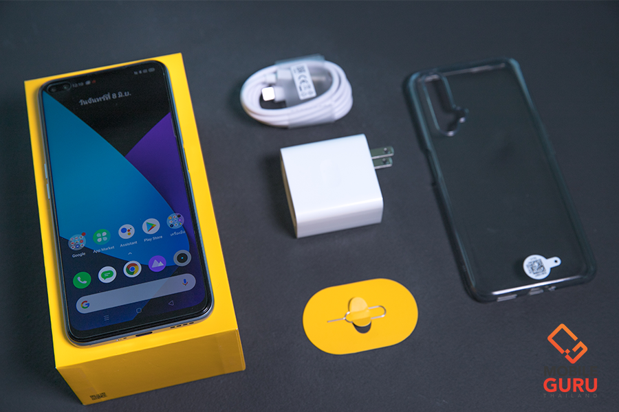 สำหรับกล่องของ realme X3 SuperZoom ยังคงใช้โทนสีเหลืองคลุมทั้งกล่องเหมือนรุ่นอื่น ๆ ด้านหน้ามีชื่อรุ่นแปะไว้ชัดเจนครับ ส่วนด้านในเมื่อเปิดฝากล่องขึ้นมาก็จะพบกับอุปกรณ์ภายในกล่องดังนี้