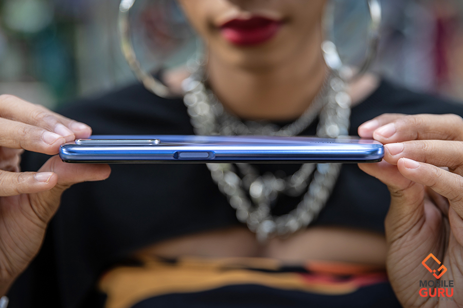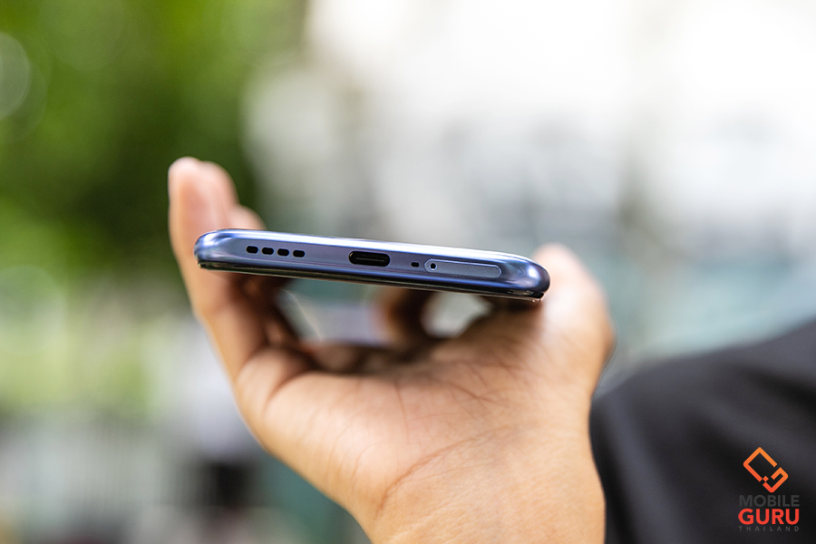 ส่วนด้านล่างของตัวเครื่อง มีถาดสำหรับใส่ซิมการ์ดแบบ Dual nano-SIM Slot รองรับซิมการ์ดแบบ Nano 2 ซิม (เพิ่มพื้นที่ความจำภายนอกไม่ได้), ไมโครโฟนสนทนา, พอร์ตเชื่อมต่อแบบ USB Type-C และลำโพงตัวเครื่อง