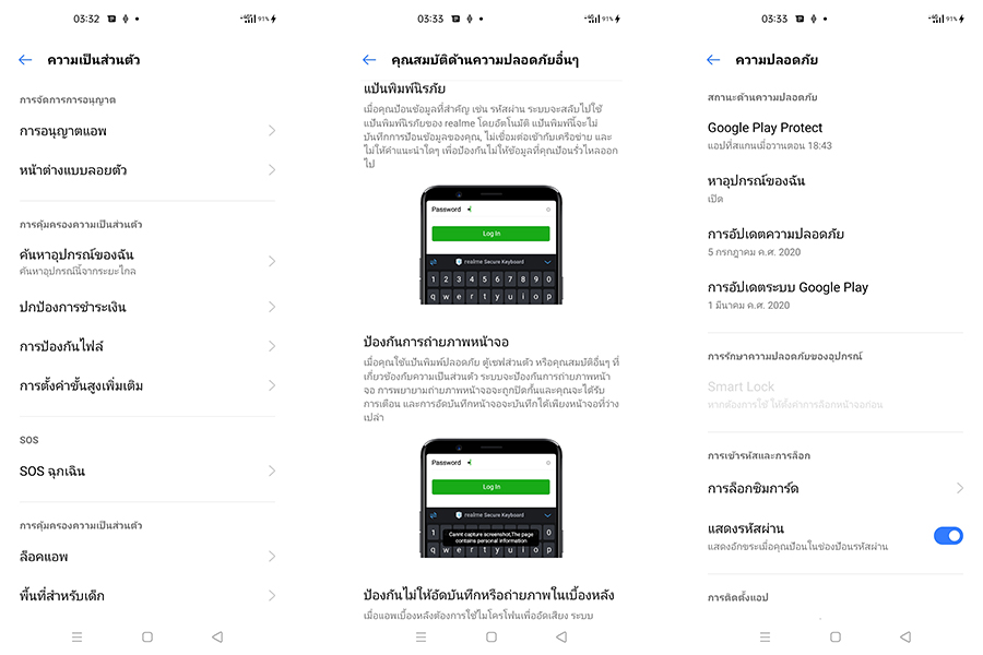 - ระบบปฎิบัติการ Android 10 ครอบทับด้วย realme UI