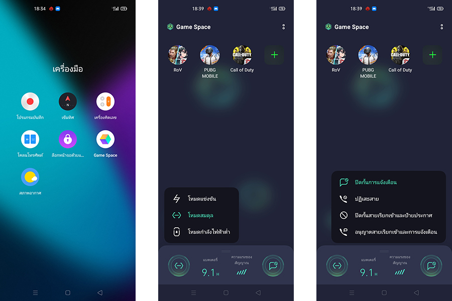เป็นฟีเจอร์สำหรับคอเกมที่ทางเรียลมีใส่มาให้ เพื่อให้ผู้ใช้งานแบบเราๆ สามารถเลือกจัดการทรัพยากรบนตัวเครื่องได้ตามใจคิด เพื่อให้การเล่นเกมได้อรรถรสมากที่สุดตรงตามที่ต้องการ โดยภายในโหมดนี้ นอกจากจะเปิดให้เราเลือกปรับแต่งได้เองแล้ว ยังมีโหมดสำเร็จรูปมาให้เลือกใช้ด้วยนะ จากที่ลองใช้ดูก็ช่วยบูธความเร็วของตัวเครื่องได้ระดับหนึ่งเลยล่ะ ถือว่าดีนะ