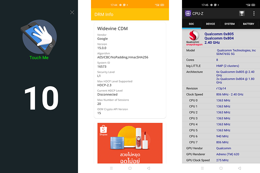 - ทดสอบ Multi-touch รองรับการสัมผัสพร้อมกันบนหน้าจอ 10 จุด