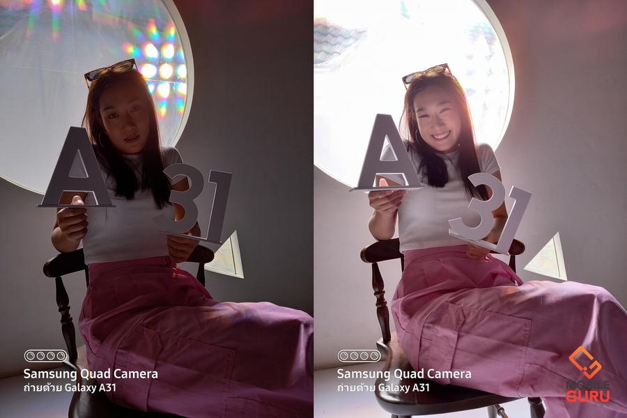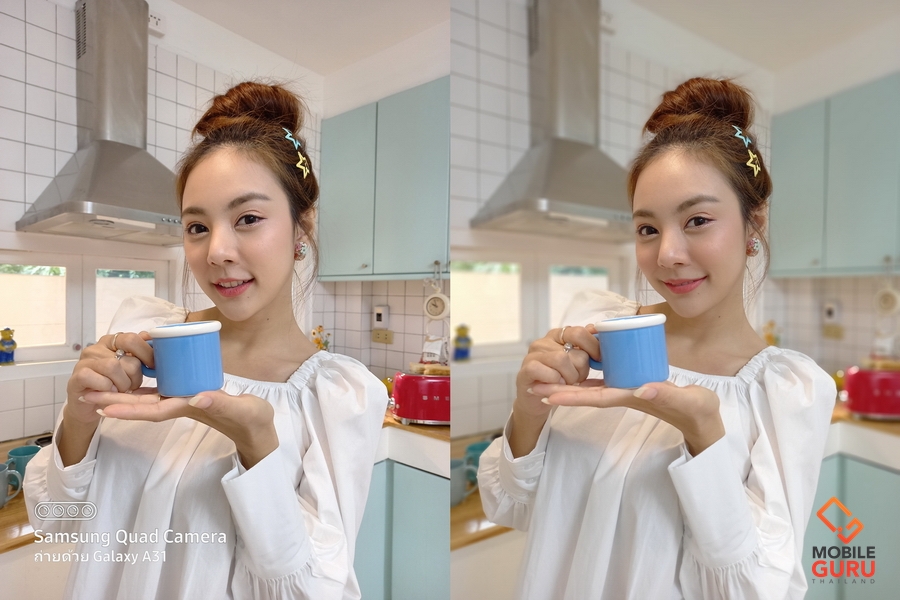 Samsung Galaxy A31 มาพร้อมกล้องหน้า Infinity U ความละเอียด 20MP F2.2 (wide) ถ่ายภาพ Selfie ได้สวยกว่าที่เคยจริงๆครับ สามารถปรับแต่งได้อย่างละเอียด ไม่ว่าจะเป็นความเนียนของผิว โทนสีผิว หรือโครงหน้า รวมทั้งสามารถปรับแบบ Auto ได้ด้วย จากภาพตัวอย่างจะเห็นความแตกต่างได้อย่างชัดเจนเลยนะครับ