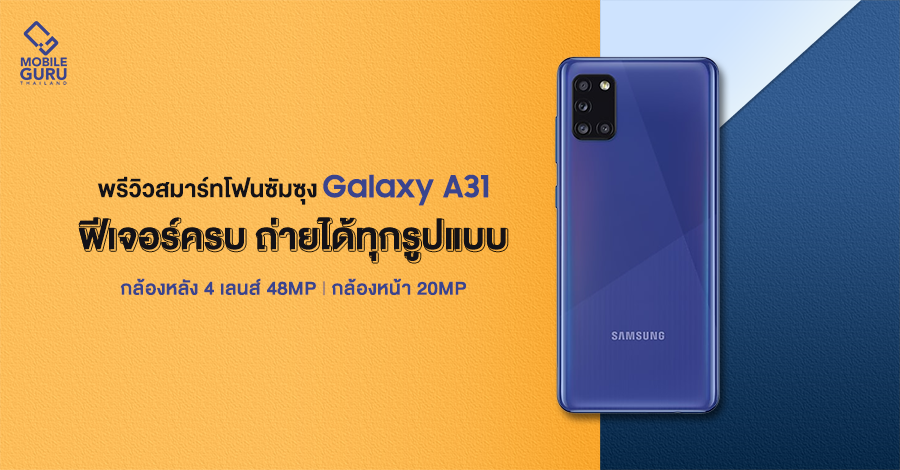 Samsung Galaxy A31 เป็นสมาร์ทโฟนที่เปิดตัวมาได้สักพักใหญ่แล้วนะครับ ต้องบอกเลยว่าสมาร์ทโฟนรุ่นนี้ไม่ธรรมดาเลยนะครับ จากการได้ทดสอบผมว่ามันน่าสนใจกว่าที่คิด ไม่ว่าจะเป็นดีไซน์ วัสดุ ที่สวยงามและดูดีมากๆ หน้าจอที่สวยงามสดใส และความลื่นไหลที่น่าพอใจ รวมทั้งกล้องที่คุณภาพเกินราคา แนะนำว่าต้องได้สัมผัสด้วยตัวเองจริงๆ แล้วคุณจะชอบสมาร์ทโฟนรุ่นนี้กันอย่างแน่นอน