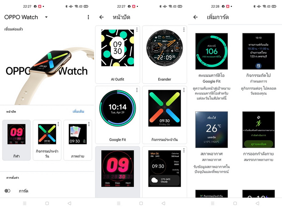 HeyTab Healt แอปพลิเคชั่นการติดตามกิจกรรมการออกกำลังกายของ OPPO เองครับ เป็นแอปฯ ที่น่าสนใจมากๆ วิเคราะห์ และเก็บข้อมูลกิจกรรมการออกกำลังกายได้อย่างละเอียด หน้าตา UI สวยงาม สามารถตกแต่งหน้าปัดนาฬิกา (Watch Face) ได้อย่างหลากหลาย มาพร้อมฟีเจอร์ที่น่าสนใจอย่าง AI Outfit ที่ช่วยในการเลือกหน้าปัดที่สวยงาม เหมาะกับการแต่งกายของเรา เพียงแค่ถ่ายภาพเสื้อผ้าที่เราสวมใส่เท่านั้นเอง ก็ได้ได้หน้าปัดที่เหมาะกับการแต่งตัวของเราแล้ว นอกจากนี้ยังมี Customizable Watch Face สามารถตั้งรูปภาพของเรา หรือภาพที่เราชอบมาเป็นภาพบนหน้าปัดของเราได้ด้วย