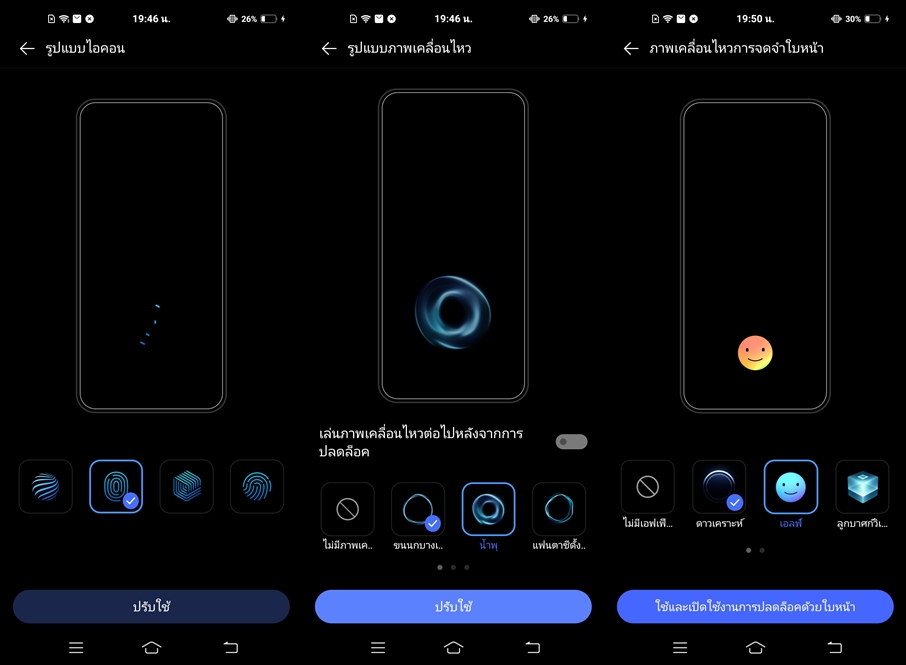 การปลับเปลี่ยน Effect มากมายในทุกๆ รายละเอียด ต้องบอกว่า Funtouch 10 ของวีโว่เป็นอีกหนึ่งระบบ UI ที่สมารถปรับแต่งได้เยอะมากครับ ทั้งไอค่อนการแสดงผลต่างๆ รวมไปถึง Effect การแสดงผล และการแจ้งเตือน ทั้งตอนสแกนลายนิ้วมือ ใบหน้า การชาร์จ ขณะเล่นเพลง แจ้งเตือน และสายเรียกเข้า ล้วนปรับแต่งได้ทั้งหมดเลย