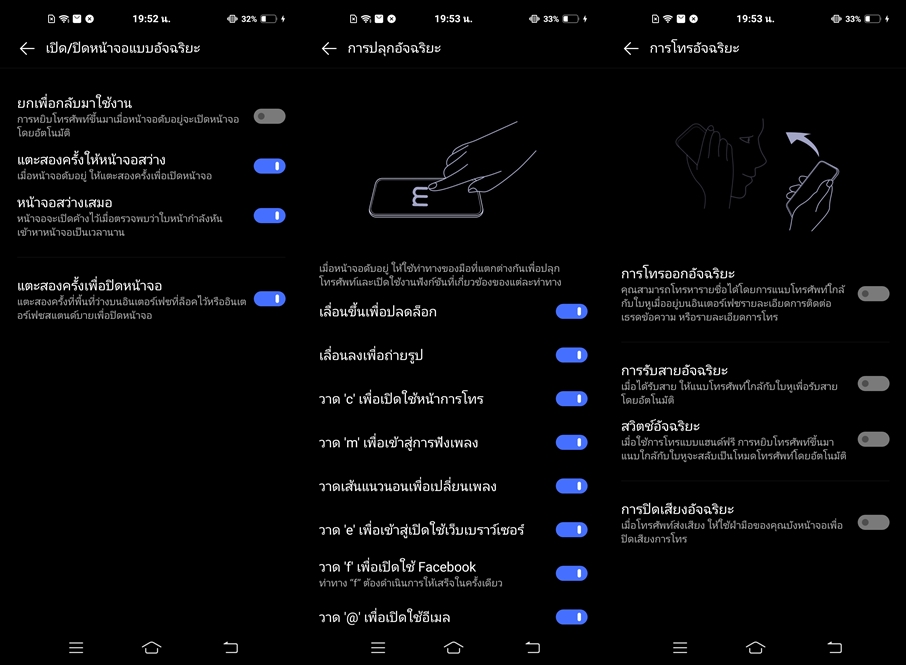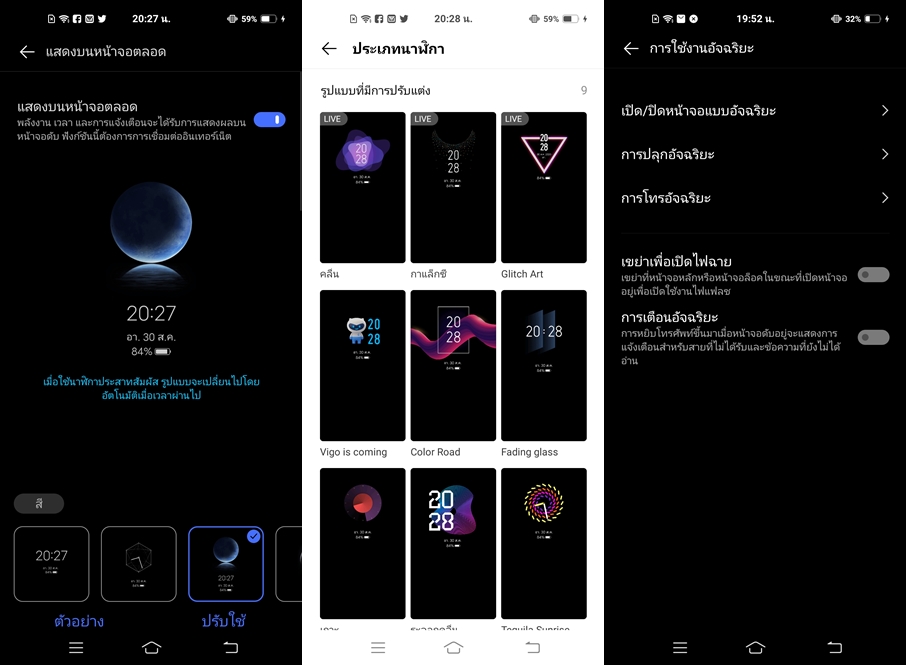 ด้านฟีเจอร์ Always-On Display ก็มีให้เลือกปรับแต่งมากมาย รวมทั้งสามารถดาวน์โหลดเพิ่มได้ พร้อมรองรับ Gesture อำนวยความสะดวกในการใช้งาน มีมาให้ใช้งานเพียบครับ ทั้งการแตะหน้าจอ และการวาดหน้าจอ รวมทั้งการใช้เซ็นเซอร์ต่างๆ บนเครื่อง ก็มีมาให้ครบ