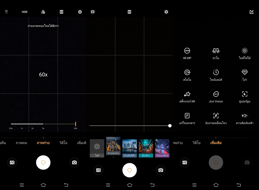 - กล้องหน้าความละเอียดสูง 32MP และกล้องหลัง 4 เลนส์ 48MP รองรับการซูมสูงสุดถึง 60x พร้อมฟีเจอร์การถ่ายภาพมากมาย