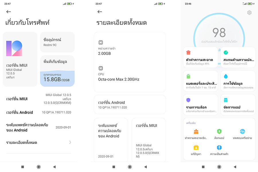 Redmi 9C มาพร้อม MIUI 12 บนพื้นฐานของระบบปฏิบัติการ Android 10 หน้าตาสวยงาม สะอาดตา และเป็นมิตรกับผู้ใช้ มีฟีเจอร์การใช้งานมาให้พอสมควรเลยค่ะ ที่ต้องใช้งานหลัก ๆ คือมีให้ครบ
