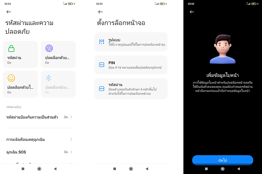 - การรักษาความปลอดภัย (Security) มาพร้อมระบบรักษาความปลอดภัย 3 รูปแบบ คือ รหัสผ่าน, ปลดล็อกด้วยใบหน้า และปลดล็อกด้วยลายนิ้วมือ โดยสามารถเข้าไปเซ็ตการตั้งค่าได้ที่ "การตั้งค่า" > "รหัสผ่านและความปลอดภัย"