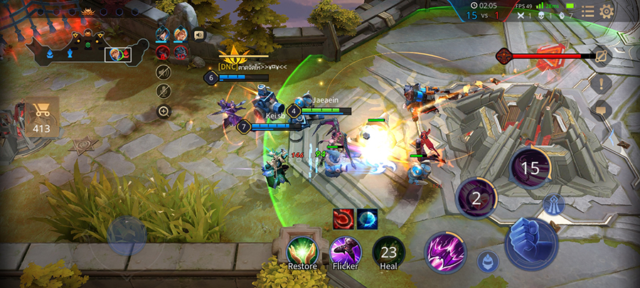 ทดสอบเล่นเกม ROV โดยรวมถือว่าดีใช้ได้เลย สามารถตั้งค่าเปิดโหมดเฟรมเรทสูงได้ สามารถเปิดภาพ HD ระดับสูงมากได้ และสามารถเปิดการแสดงผลระดับสูงมากได้ด้วย เทสต์เปิดสุดทุกอย่าง ค่าเฟรมเรทมีแกว่งอยู่เหมือนกัน โดยวิ่งอยู่ในช่วง 49-60 FPS ถ้าชอบแบบเล่นลื่น ๆ ปรับเกมให้เป็นค่าเริ่มต้นจะดีที่สุด