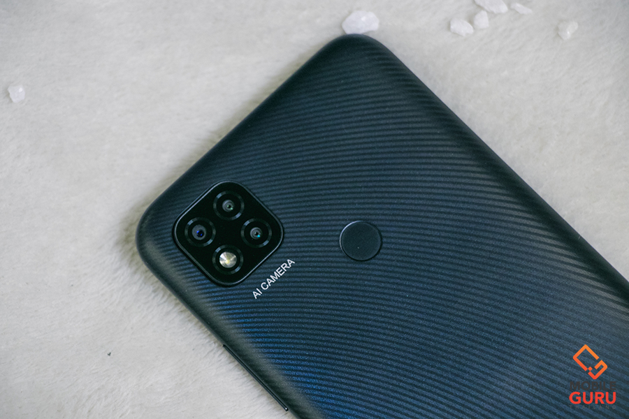 ขยับกลับมาที่ด้านหลังของตัวเครื่อง ติดตั้งเป็นกล้อง AI 3 เลนส์ วางบนโมดูลทรงสี่เหลี่ยมจตุรัส ประกอบด้วย เลนส์หลัก ความละเอียด 13 ล้านพิกเซล ค่ารูรับแสงกว้าง f/2.2 เลนส์ Macro ความละเอียด 2 ล้านพิกเซล ค่ารูรับแสงกว้าง f/2.4 และเลนส์ Depth ความละเอียด 2 ล้านพิกเซล ค่ารูรับแสงกว้าง f/2.4 พร้อมด้วยไฟแฟลช LED โดยจัดวางอยู่ในตำแหน่งด้านบนซ้ายของฝาหลัง ถัดลงมามีเซ็นเซอร์สแกนลายนิ้วมือ และส่วนล่างของฝาหลังมีโลโก้ Redmi สีขาวอยู่ด้วย