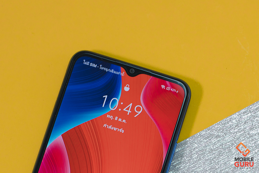 ด้านหน้า ใช้หน้าจอแสดงผล LCD Mini-drop Fullscreen ขนาด 6.5 นิ้ว ความละเอียด 1,600 x 720 พิกเซล มีพื้นที่หน้าจอให้ใช้งาน (Screen-to-body Ratio) มากถึง 88.7% มีค่าความสว่างอยู่ที่ 420 nits และตัวหน้าจอครอบทับด้วยกระจกกันรอย Corning Gorilla Glass
