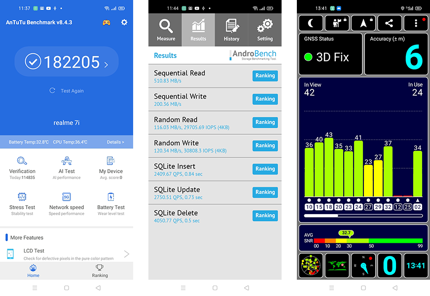 - ทดสอบความเร็วในการอ่าน-เขียนของหน่วยความจำด้วยแอปพลิเคชั่น AndroBench ได้ Sequential Read 510.83 MB/s | Sequential Write 200.36 MB/s