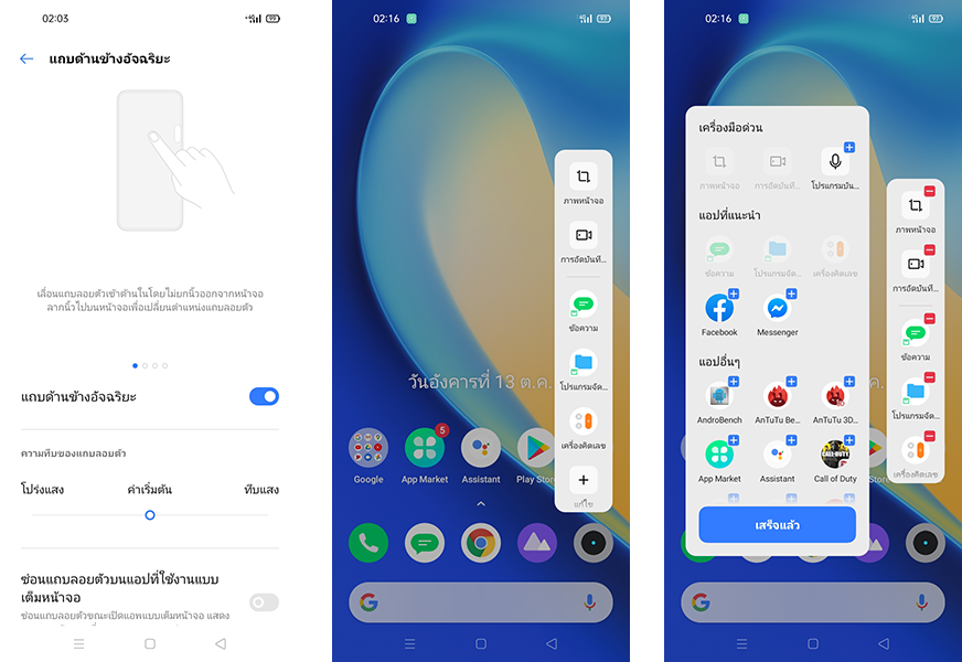 ในส่วนของฟีเจอร์พื้นฐานอย่าง โหมดโคลนแอป, โหมดหน้าจอแบ่งส่วน, เครื่องมืออำนวยความสะดวกต่าง ๆ ทั้ง ปุ่มนำทาง ลูกบอลช่วยเหลือ แถบด้านข้างอัจฉริยะ และ Gestures & Motions ก็ใส่มาให้ครบครัน