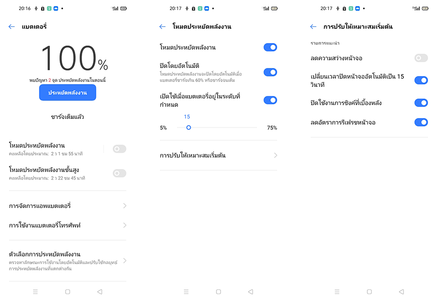 realme 7i มาพร้อมแบตเตอรี่ขนาดความจุ 5,000 mAh สามารถใช้งานโดยทั่วไปในหนึ่งวันได้แบบสบาย ๆ ซึ่งจากการทดลองแบบเปิดใช้งานหน้าจอแบบ 90Hz ตลอดทั้งวัน ก็ยังเหลือเพียงพอให้ใช้จนถึงช่วงเย็นเลย นอกจากแบตฯ อึด ๆ แล้ว realme 7i ยังใส่ชาร์จไว 18W มาให้ด้วย โดยสามารถชาร์จไฟได้ถึง 33% ในเวลาเพียง 33 นาทีเท่านั้น พร้อมทั้งยังสามารถถ่ายโอนแบตเตอรี่ไปให้กับอุปกรณ์อื่นได้อีกด้วย แต่ความสามารถนี้จำเป็นต้องเปิดฟังก์ชัน OTG และใช้สาย OTG ในการชาร์จด้วยนะ