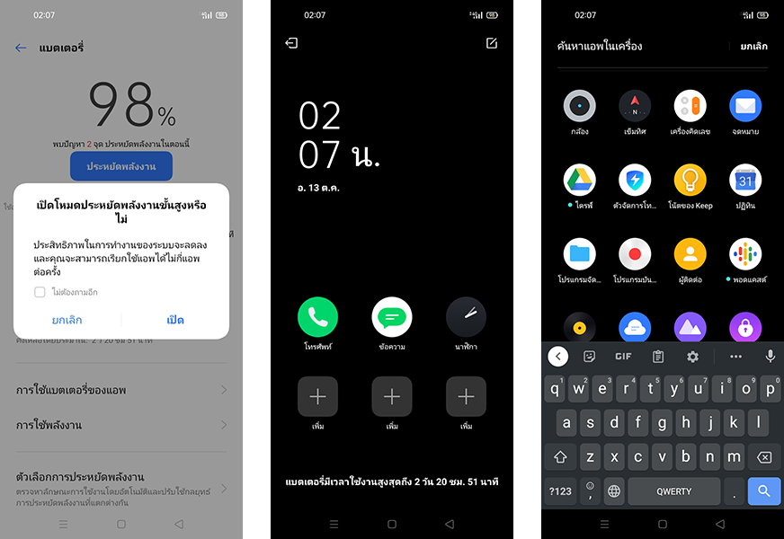 - ระบบปฎิบัติการ Android 10 ครอบทับด้วย realme UI