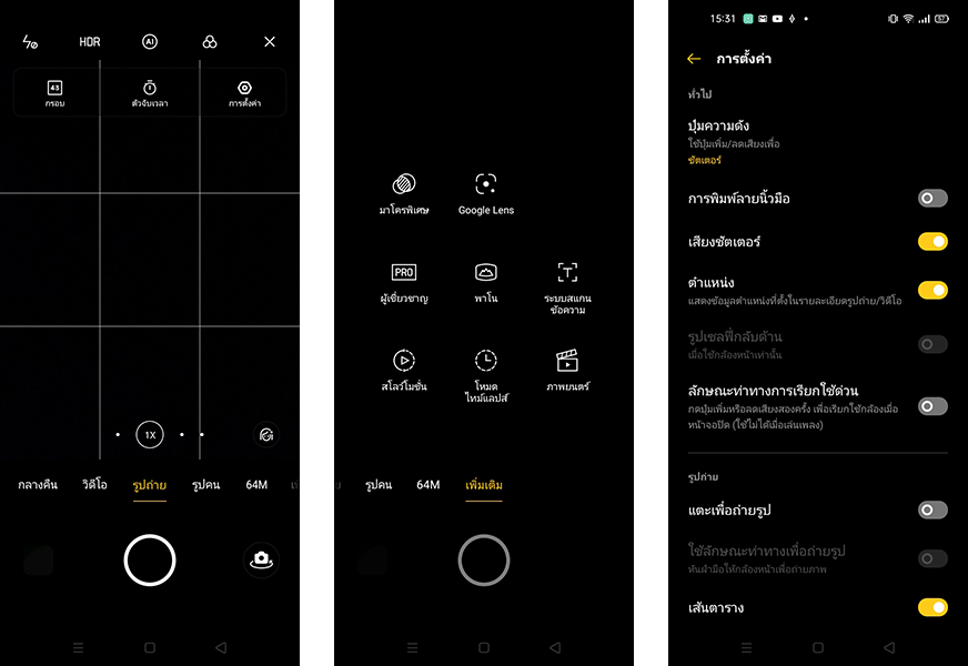 - Ultra Clear 64MP - โหมดถ่ายภาพความละเอียดสูง (9,248 x 6,944 พิกเซล)