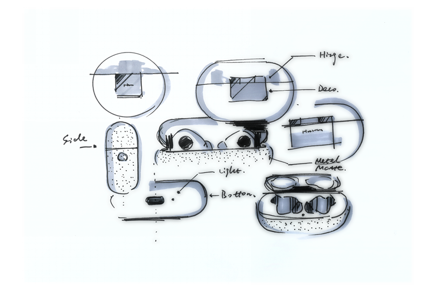 แรกเริมเดิมทีก่อนจะมาเป็นดีไซน์เคสเหลี่ยม ดีไซเนอร์ได้พัฒนาเคสของ HUAWEI FreeBuds Pro จากทรงกลม แต่หลังจากที่ได้ทดลองเพื่อหาข้อดีข้อเสีย ก็พบว่าทรงที่มีความเหลี่ยมหน่อยจะช่วยเพิ่มพื้นที่ในการเก็บ ทั้งยังสามารถถือเคสได้สะดวก เหมาะกับเวลาใช้งานจริง โดยเคสของ HUAWEI FreeBuds ก็ได้รับการพัฒนาให้มีน้ำหนักเบาเพียง 60 กรัมเพื่อความสะดวกในการพกพา แตกต่างจากหูฟัง TWS อื่นๆ ด้วยก้านหูฟังที่เป็นทรงสี่เหลี่ยม ซึ่งได้แรงบันดาลใจมาจากแป้นตัวโน้ตของเปียโน เรียบ แตกต่าง ทว่างดงาม รายละเอียดของดีไซน์เพื่อให้ตอบโจทย์การส่งเสียงเพลงไปยังหูของผู้ใช้ให้มีประสิทธิภาพที่สุด