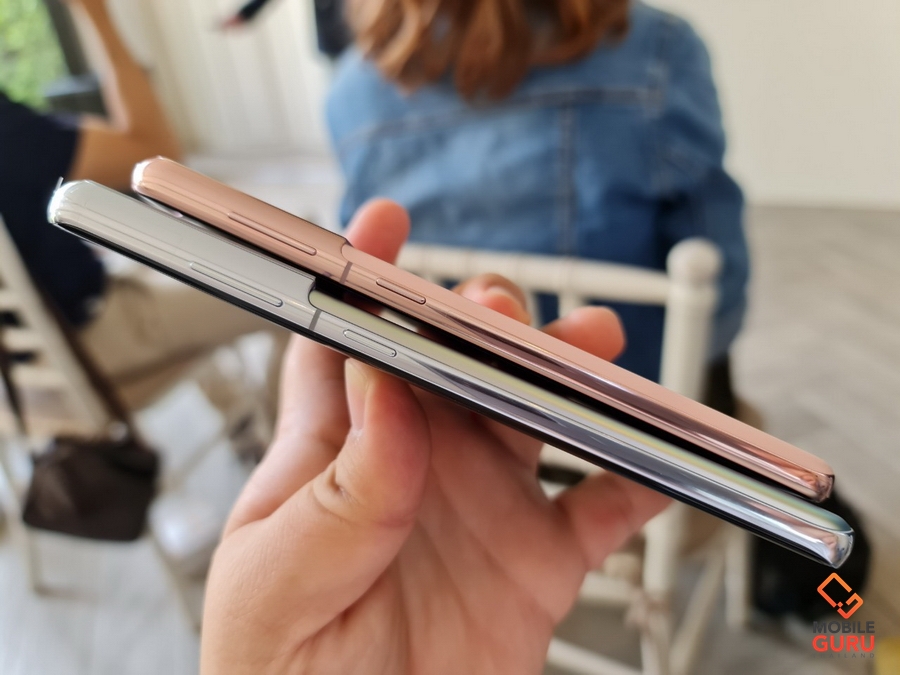 Samsung Galaxy S21 Ultra มาพร้อมดีไซน์แบบใหม่เรียกว่า Contour Cut ออกแบบขอบโลหะหุ้มรอบชุดกล้อง ตัดกับกระจกผิวด้าน ดูสวยงาม แต่โดยส่วนตัวผมชอบแนวทางของ Samsung Galaxy Note 20 Ultra มากกว่านะครับ มันดูมีความเป็น Unisex มากกว่า แวววาว ตัดกับโลหะ และฝาหลังผิวด้านๆ แต่อันนี้ก็แล้วแต่ความชอบเลยนะครับ