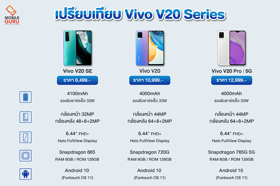 สเปกของ Vivo V20 Pro 5G | Vivo V20 | Vivo S20 SE